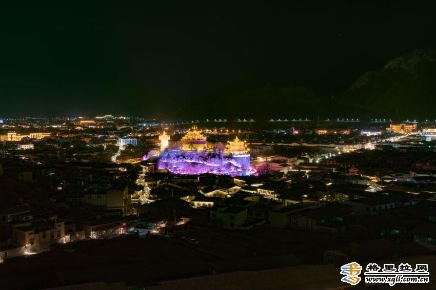 夜幕降臨,華燈初上,香格里拉市獨克宗古城燈光絢麗,成為“五一”假期的一道風景線。