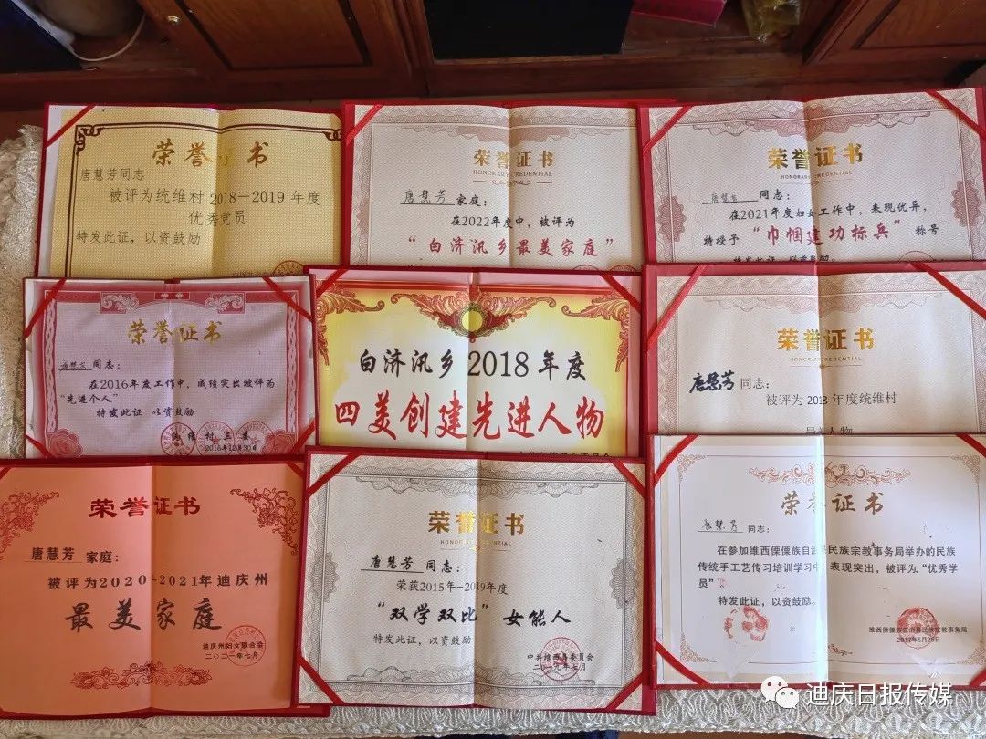 唐慧芳孝老愛親的精神不僅讓自己的公公婆婆能夠安享晚年幸福生活,也用實際行動感染了晚輩。她的家庭多次被州婦聯(lián)評定為“最美家庭”,她多次被縣、鄉(xiāng)、村評定為“最美人物”“雙學(xué)雙比”女能人、“優(yōu)秀黨員”“巾幗建功標(biāo)兵”“先進個人”。她用她的樸實真誠詮釋著中華兒女尊老愛老、孝老愛親的優(yōu)秀品質(zhì),她用她的無私奉獻踐行了一名共產(chǎn)黨員甘當(dāng)群眾的“貼心人”的莊嚴承諾!