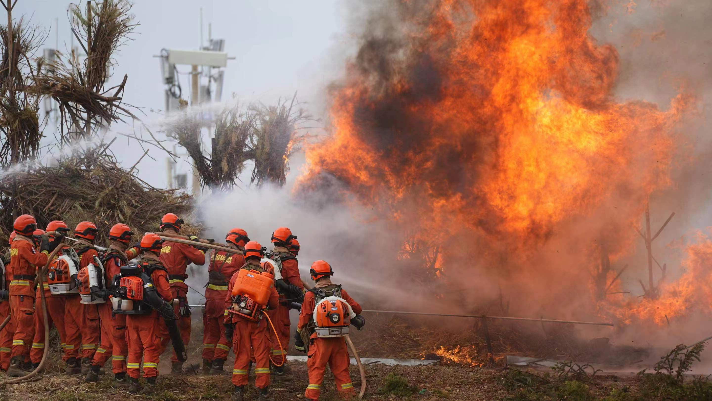 本次演習模擬的是麗江市玉龍縣發(fā)生一起7.6級地震,由此引發(fā)的連鎖反應造成了中緬油氣管道泄漏,西電東送輸變電站線路損毀,森林火災等多項災害。其中,最為危險的莫過于急速爆燃的飛火在“高山峽谷”間肆意飛竄。