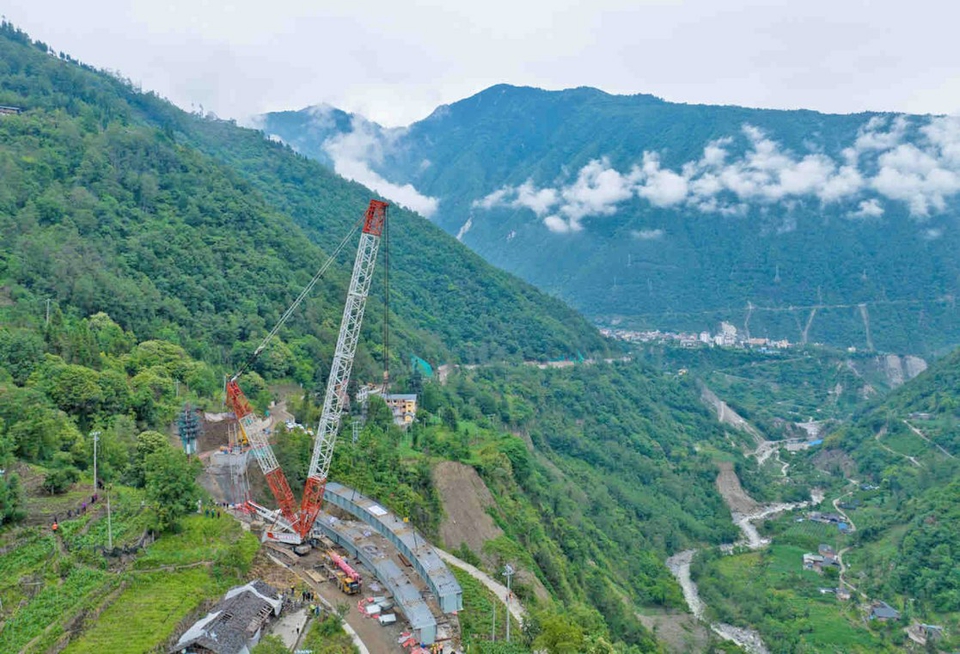 海螺溝景區(qū)道路災后恢復重建項目迎來新進展:嘎木溝大橋鋼箱梁順利完成架設。