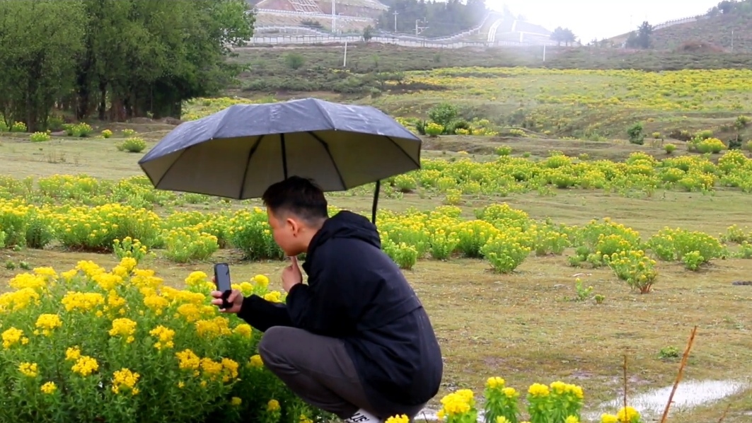 黃色的狼毒花在雨中越發(fā)精神
