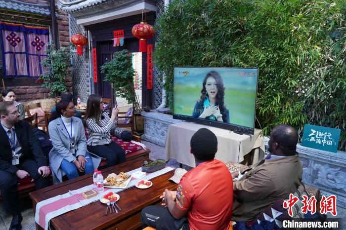 圖為參加“Z世代”畫像中國網(wǎng)絡互動活動的海外青年們觀看“民歌大觀”。主辦方供圖