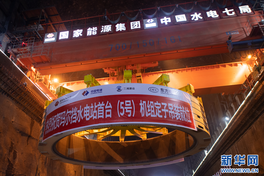 瑪爾擋水電站首臺(tái)機(jī)組定子吊裝成功