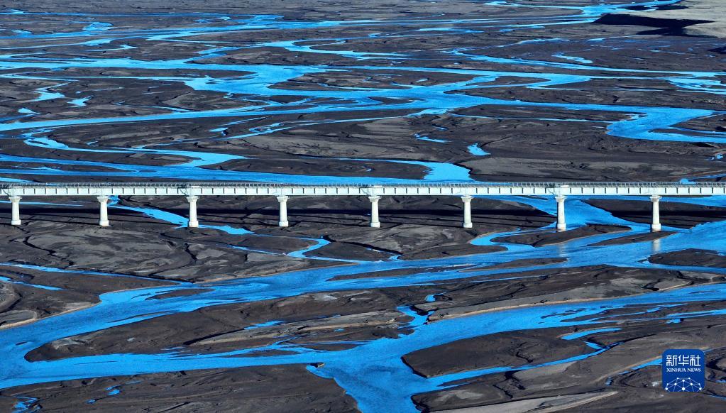 6月15日,一列火車駛過長江源地區(qū)的沱沱河。新華社記者 張鋮 攝