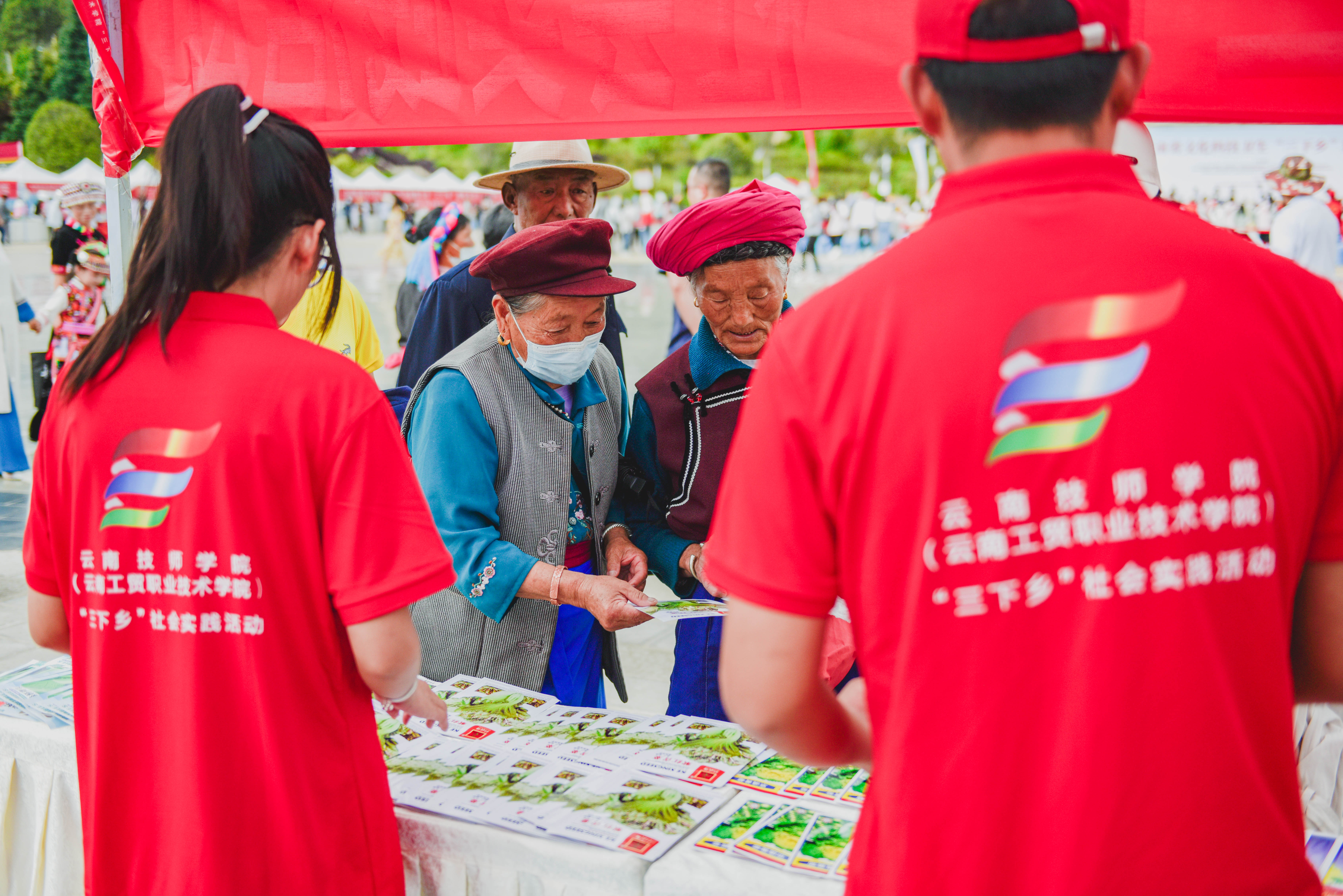 集中示范聚民心。學(xué)院“三下鄉(xiāng)”服務(wù)隊(duì)在維西縣萬人廣場參加集中示范活動(dòng),向群眾免費(fèi)發(fā)放了青菜、芥菜、蘿卜等10余類菜種800余包,鼓勵(lì)群眾大力發(fā)展庭院經(jīng)濟(jì),推進(jìn)農(nóng)村人居環(huán)境整治,助力村民增收致富。