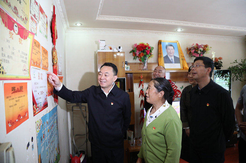 沈陽(yáng)在黨員任龍芳家中了解后輩學(xué)習(xí)情況。