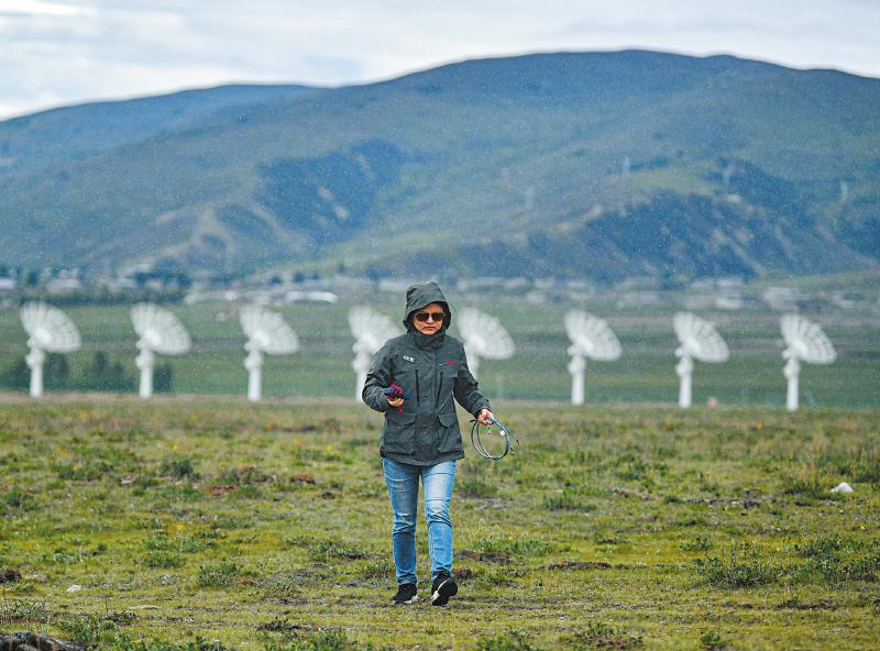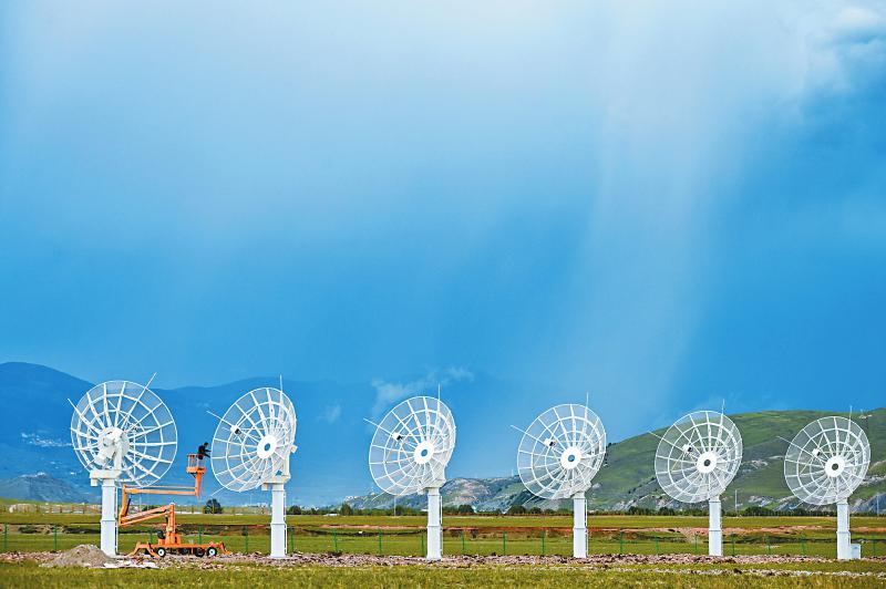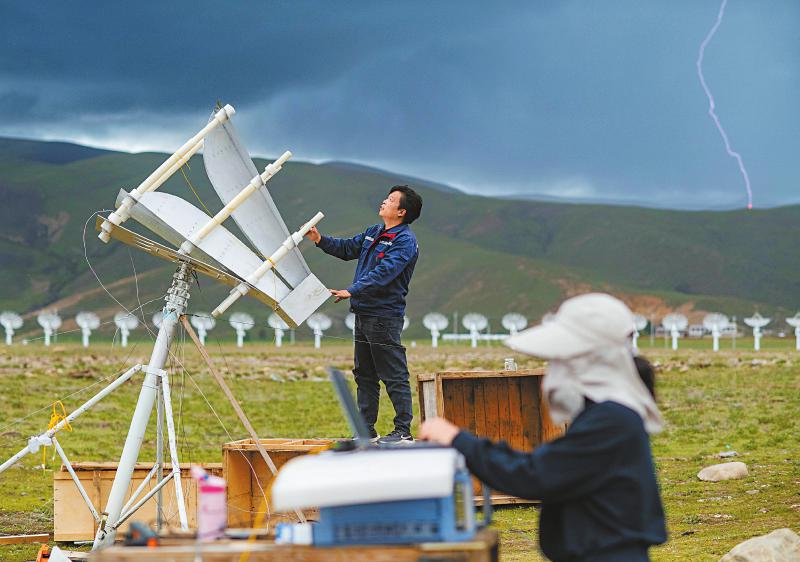 7月8日,四川省甘孜州稻城縣噶通鎮(zhèn)天氣說變就變。在國家重大科技基礎(chǔ)設(shè)施——空間環(huán)境地基綜合監(jiān)測網(wǎng)(子午工程二期)圓環(huán)陣太陽射電成像望遠(yuǎn)鏡項(xiàng)目建設(shè)現(xiàn)場,中國電科第39研究所現(xiàn)場施工負(fù)責(zé)人葉愛林和同事正在進(jìn)行天線增益調(diào)試實(shí)驗(yàn)。突然,一道閃電劃過天際,轟隆隆的雷聲過后便是傾盆大雨,葉愛林和同事不得不停下手中正在進(jìn)行的實(shí)驗(yàn),臨時找地方躲雨?!斑@雨下不了多久,等雨停了,我們再繼續(xù)。”在項(xiàng)目建設(shè)現(xiàn)場已工作了480多天的他,被同事們稱作半個氣象“土專家”。他不僅能“察言觀色”看懂高原上的云彩,還能大差不差地推測出天氣變化。在海拔3800多米的噶通鎮(zhèn),許多科研人員像葉愛林一樣,默默奮戰(zhàn),希望在建的這一國家重大科技基礎(chǔ)設(shè)施能早日運(yùn)行,為中國空間科學(xué)事業(yè)的發(fā)展提供關(guān)鍵性的探索幫助及技術(shù)支持,使我國步入世界空間科學(xué)領(lǐng)域的先進(jìn)行列。