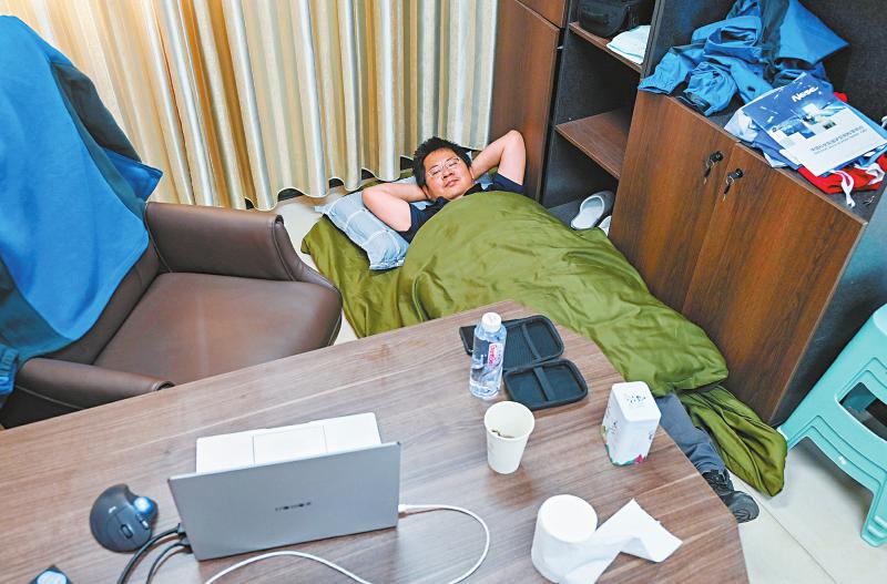 7月8日中午,子午工程二期圓環(huán)陣太陽射電成像望遠(yuǎn)鏡項(xiàng)目副主任設(shè)計(jì)師武林抓緊時間在辦公室午休。