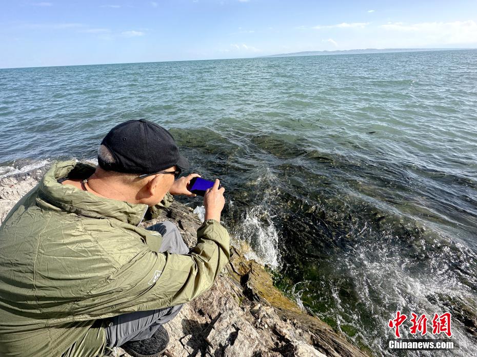 游客拍攝青海湖斷崖密集的湟魚。李雋 攝