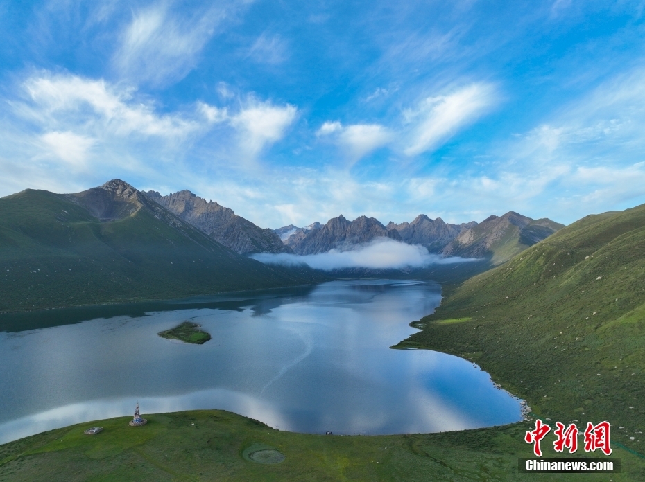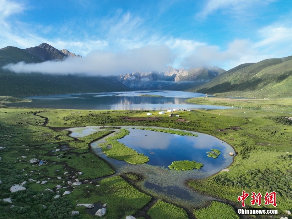 7月19日,盛夏時(shí)節(jié),青海省果洛藏族自治州久治縣年保玉則山間云霧繚繞,山下鮮花盛開(kāi),水清草豐,靜謐的湖水與嶙峋的山巒相映成趣,宛如仙境。年保玉則總面積3469平方公里,山形如蓮花,保存有冰蝕地貌、冰磧地貌、現(xiàn)代冰川等地質(zhì)遺跡。中新社記者 馬銘言 攝