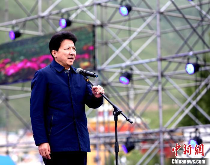 圖為中共玉樹(shù)州委書(shū)記蔡成勇致辭。薛蒂 攝