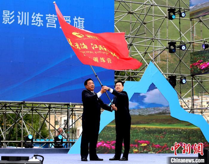 圖為中共玉樹(shù)州委副書(shū)記、宣傳部部長(zhǎng)才旦周(左)為此次“大美青海 江源玉樹(shù)”攝影訓(xùn)練營(yíng)授旗。薛蒂攝