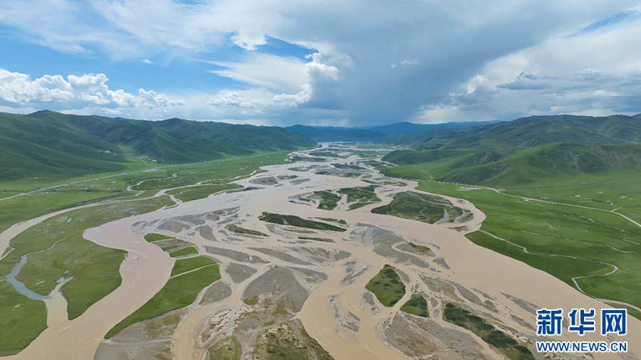 圖為在青海省果洛藏族自治州甘德縣境內(nèi)拍攝的夏日風(fēng)光(無人機(jī)照片)。新華網(wǎng) 宋忠勇 攝