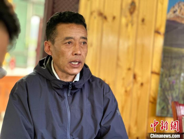 圖為三江源國(guó)家公園長(zhǎng)江源園區(qū)曲麻萊管理處生態(tài)環(huán)境和自然資源管理局局長(zhǎng)尕塔正在向記者介紹拉覺(jué)悟生態(tài)教育站建設(shè)情況。劉洋 攝