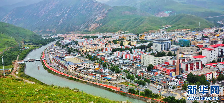 圖為青海省玉樹藏族自治州玉樹市的夏日風(fēng)光(無人機全景照片)。新華網(wǎng) 宋忠勇 攝
