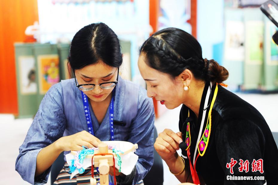 圖為游客體驗藏繡藝術。薛蒂 攝