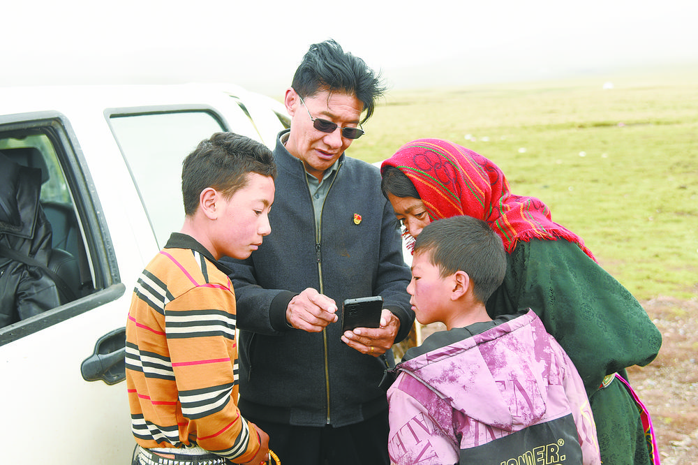 “以前放牧,得跟著牛羊滿山跑,根本離不開人,每天累得很?!卑恚谟檬謾C查看返圈牛羊?qū)崟r狀況的牧民巴措表示,現(xiàn)在放牧,隨時隨地打開手機一看,牛羊在做什么,全都知道了,輕松了不少。