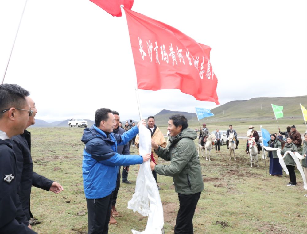 8月5日,在平均海拔超過4500米的長沙貢瑪濕地核心腹地,甘孜州委主要領(lǐng)導(dǎo)一行工作率隊(duì)來到黃河入川第一縣石渠縣,深入黃河上游重要水源涵養(yǎng)地和重要支流熱曲、查曲等河流發(fā)源地—長沙貢瑪國際重要濕地,看望慰問邊遠(yuǎn)牧民群眾,調(diào)研石渠縣黃河流域生態(tài)保護(hù)和高質(zhì)量發(fā)展工作,為長期堅(jiān)守巡護(hù)一線的長沙貢瑪黃河生態(tài)保護(hù)志愿隊(duì)授旗。