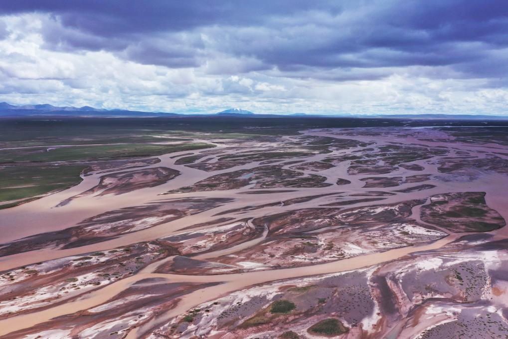 這是2023年7月26日拍攝的囊極巴隴河道,長江正源沱沱河和南源當曲在此匯合(無人機照片)。新華社記者 陳杰 攝