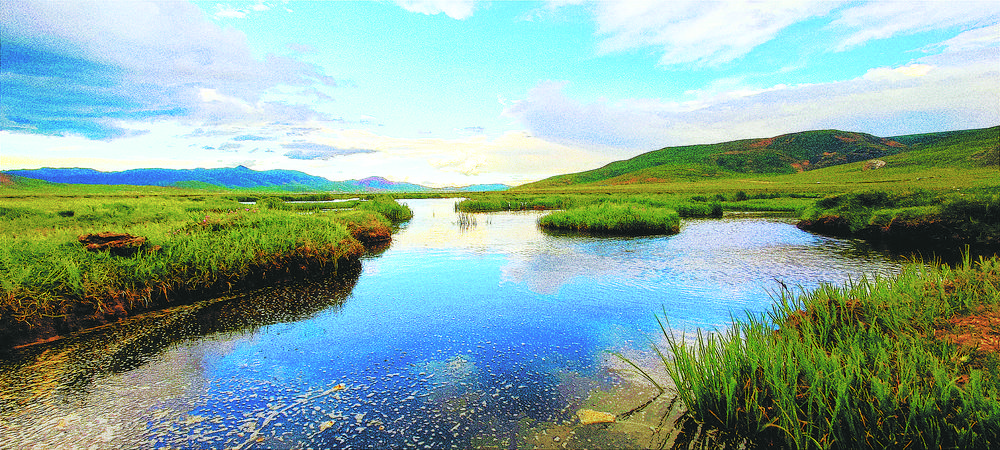 藍(lán)天白云下的隆寶灘國際重要濕地寧靜而美麗。