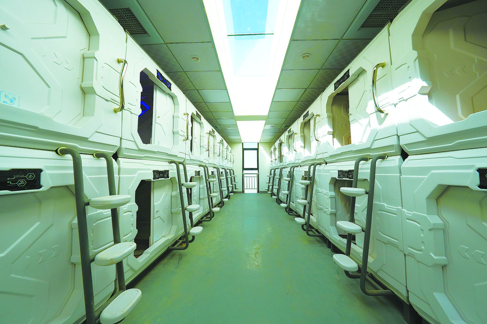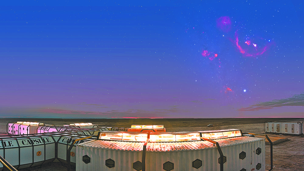 “我們的建筑風格是模擬未來人類移居火星后的生存環(huán)境,有‘總部大樓’‘火星艙’等?!表樦衩袷种傅姆较?,才發(fā)現(xiàn),原來那些白色集裝箱正是營地建筑的主體。