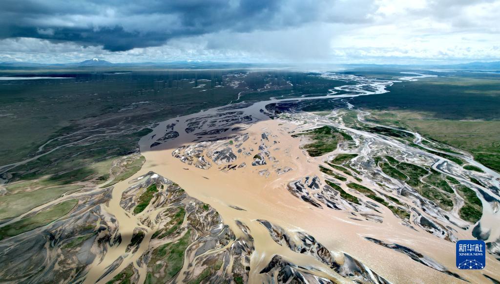 楚瑪爾河的辮狀河道(7月29日攝,無人機照片)。新華社記者 劉詩平 攝