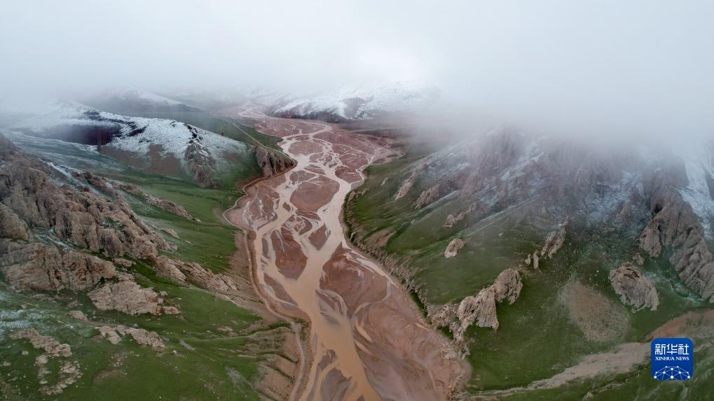 通天河支流的辮狀河道(7月26日攝,無人機照片)。新華社記者 劉詩平 攝