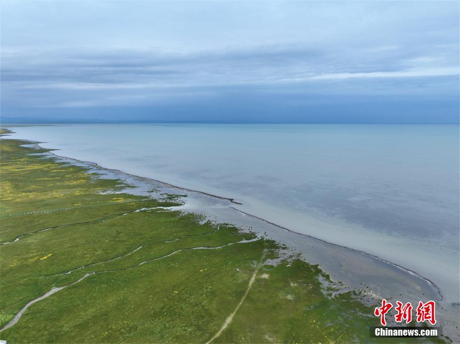14日傍晚,航拍青海省海北藏族自治州剛察縣仙女灣。仙女灣位于青海湖北岸,是青海湖濕地的核心區(qū),廣袤無垠的草原和蕩漾的湖面,形成了一幅極具治愈感的景色。1992年,青海湖濕地被列入國(guó)際重要濕地。