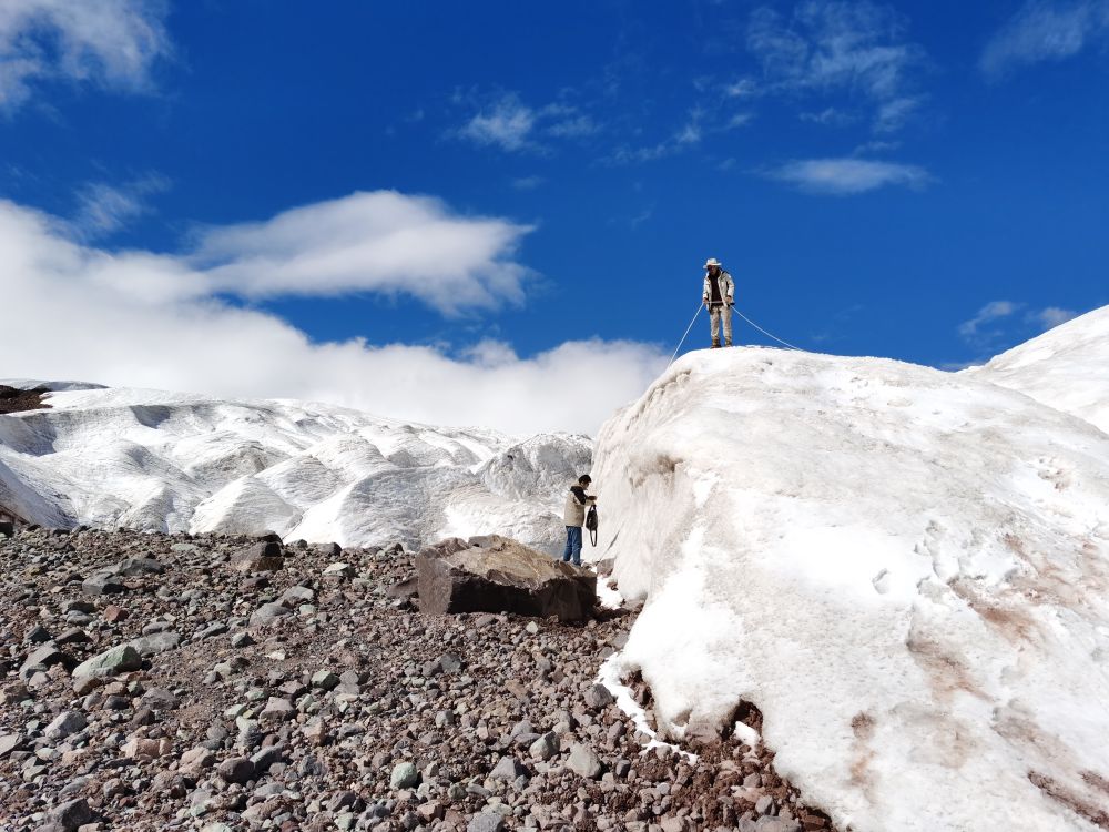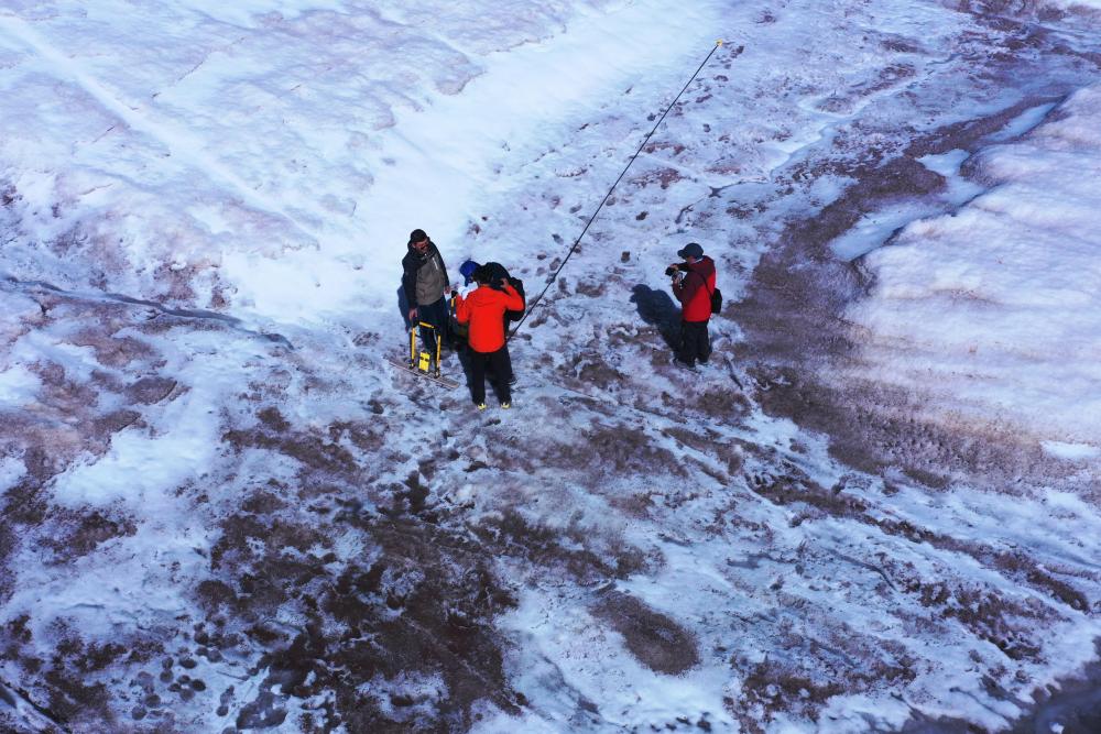 “這是我們第二次登上格拉丹東雪山主峰冰川,在去年測量的區(qū)域開展了4條測量線的雷達(dá)探測?!倍跨f,去年測量區(qū)域冰川平均厚度約12米,此次探測結(jié)果可用來比較冰川的厚薄變化,為計算冰儲量積累數(shù)據(jù)。