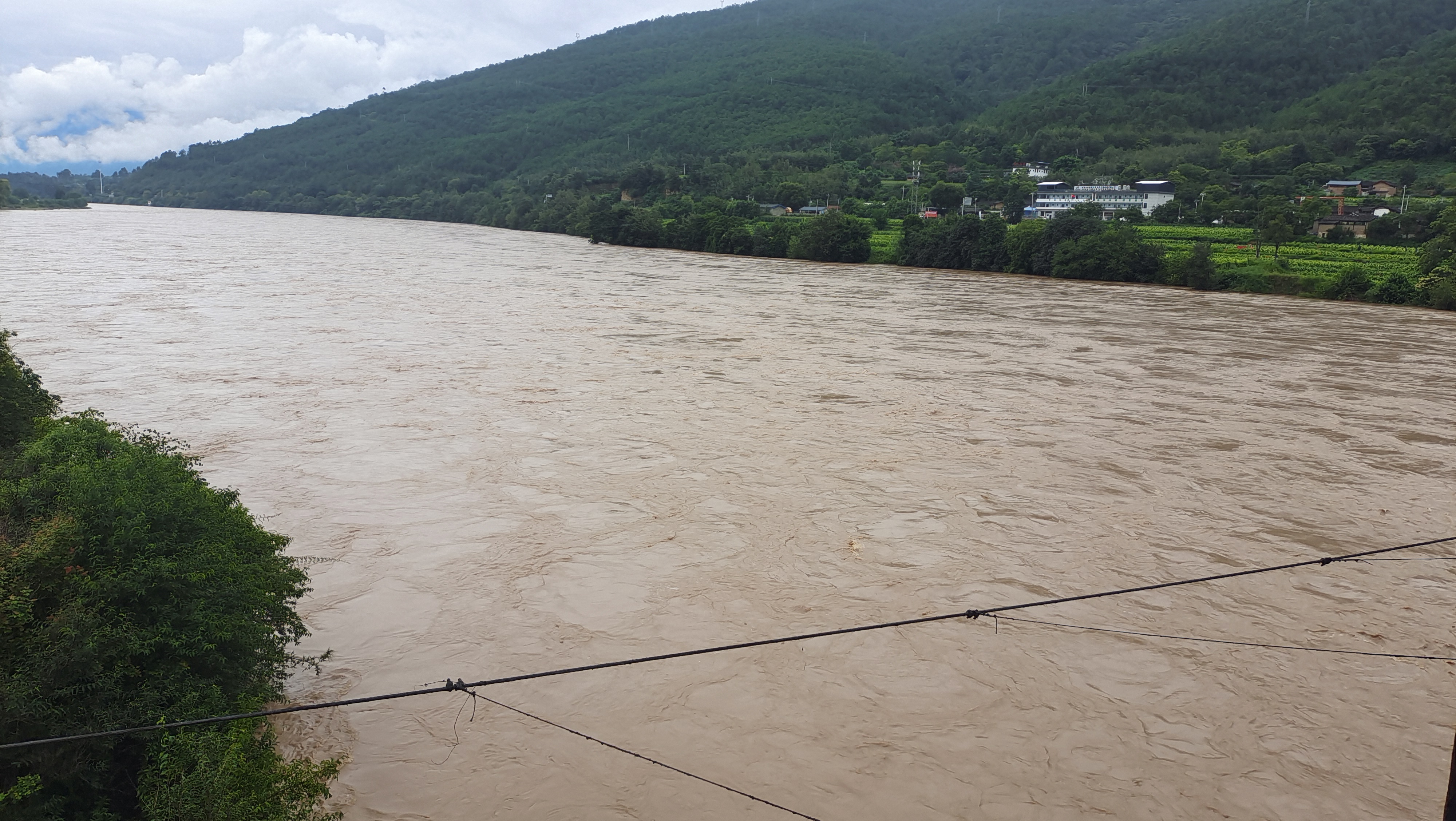 監(jiān)測(cè)數(shù)據(jù)顯示,8月21日15時(shí)下游金江鎮(zhèn)水文站水位1823.59米,超警戒1.09米,相應(yīng)流量每秒4950立方米。隨著持續(xù)降水過(guò)程,金沙江水位持續(xù)上升,上江鄉(xiāng)至金江鎮(zhèn)臨江一線(xiàn)水位已逼近農(nóng)田,江水已沒(méi)過(guò)低洼地帶的楊柳林。