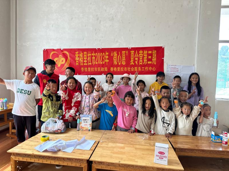 近日,由香格里拉市民政局、香格里拉市社會服務(wù)工作中心共同舉辦的尼西鄉(xiāng)2023年“微心愿”夏令營第三期暨護(hù)童成長活動在《明天更美好》的合唱中順利結(jié)營,其間開展兒童游園、才藝表演、表彰獲獎小朋友和優(yōu)秀志愿者。此次夏令營為期15天,來自尼西鄉(xiāng)幸福村、江東村、新陽村和湯滿村的153名小朋友和16名志愿者參加夏令營,開設(shè)作業(yè)輔導(dǎo)課程,舉行羽毛球、乒乓球、跳繩、丟沙包等運(yùn)動項(xiàng)目,幫助孩子們提高學(xué)習(xí)成績、增強(qiáng)身體素質(zhì)、培養(yǎng)團(tuán)隊(duì)意識,在運(yùn)動中收獲健康和快樂。圖為小朋友們在活動中表達(dá)“微心愿”。