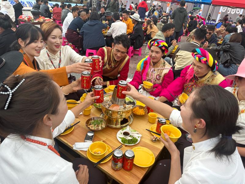 8月25日傍晚,香格里拉松茸美食節(jié)美食長街宴在獨克宗古城月光廣場舉辦。熱鬧喜慶的長街宴上,松茸刺身、牦牛肉、藏式火鍋等美食引來食客大快朵頤。