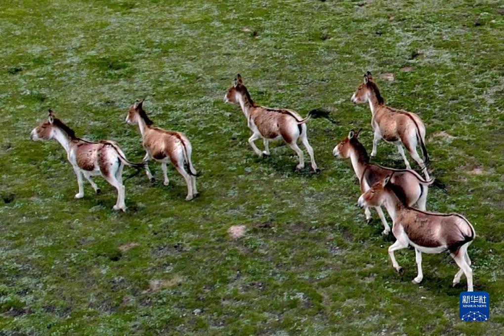 長江源區(qū)的藏野驢(7月26日攝,無人機照片)。 新華社記者 劉詩平 攝