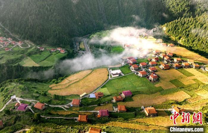風(fēng)吹麥浪溢清香,田間地頭收割忙。眼下,四川阿壩州金川縣俄熱鄉(xiāng)成片的高原黑青稞迎來收獲季。村間沿路的田地里,黑青稞在微風(fēng)吹拂下如波濤翻滾,泛著金光。高處俯望,遠(yuǎn)處群山連綿,近處麥浪起伏,沃野千里,勾勒出一幅“產(chǎn)業(yè)興、百姓富、生態(tài)美”的鄉(xiāng)村振興美麗畫卷。