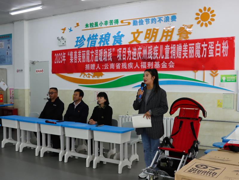 近日,云南省殘疾人福利基金會為我州康復(fù)中心和香格里拉市特殊教育學(xué)校殘疾兒童捐贈了12架兒童輪椅和178罐美麗魔方蛋白粉。這是自云南省殘疾人福利基金會將我州列為2023年“集善美麗魔方溫暖助殘”項目點后的第一批捐贈。