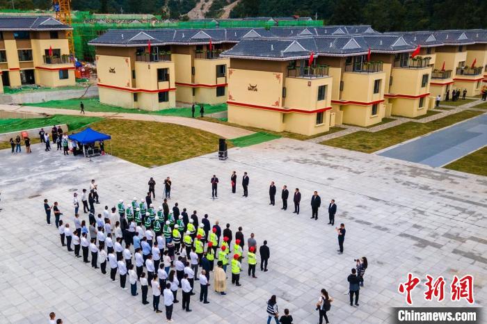 瀘定縣磨西鎮(zhèn)大杉樹村(幸福新村)集中安置點首批新房交付儀式現(xiàn)場。中新網(wǎng)記者 劉忠俊 攝