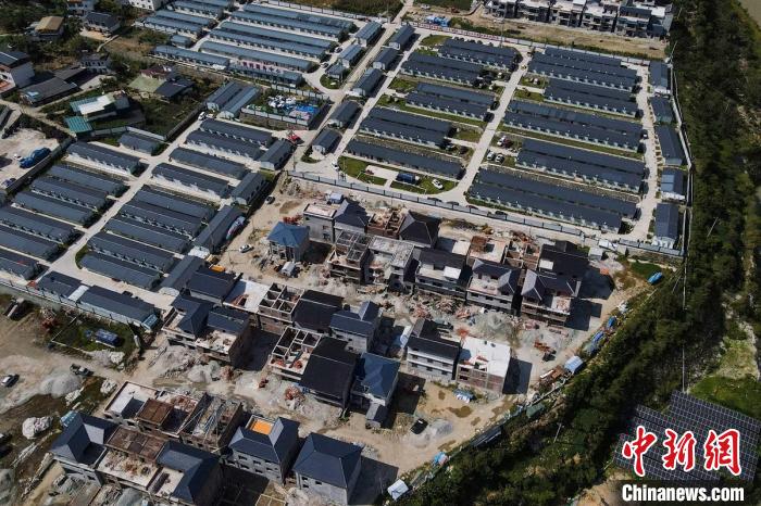 得妥鎮(zhèn)天池山村統(tǒng)規(guī)自建點正在加緊建設(shè)的新房。中新網(wǎng)記者 劉忠俊 攝