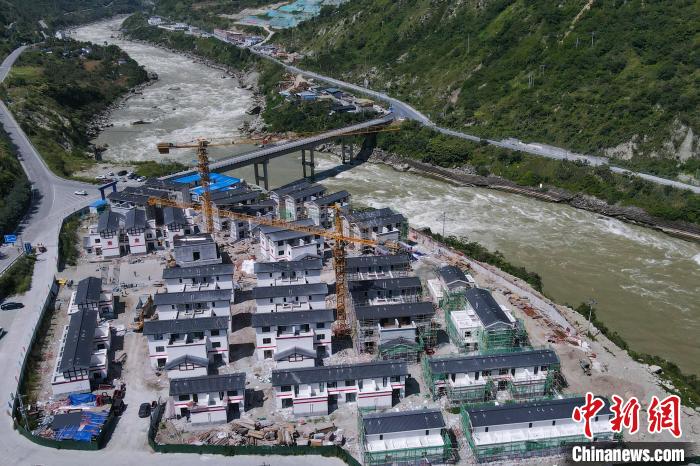 9月4日,四川甘孜州瀘定縣德威鎮(zhèn)奎武安置點(diǎn),房屋重建項(xiàng)目熱火朝天。中新社記者 劉忠俊 攝