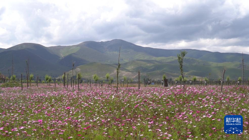 難以置信的是,這里曾是一片沙化嚴(yán)重的草場(chǎng),當(dāng)?shù)卮迕窨總鹘y(tǒng)放牧已難以為繼。2016年以來(lái),當(dāng)?shù)卣脤?shí)施生態(tài)治理工程的契機(jī),整合涉農(nóng)涉旅資金,大面積種植格?;?,打造出近1600畝的色拉花海。