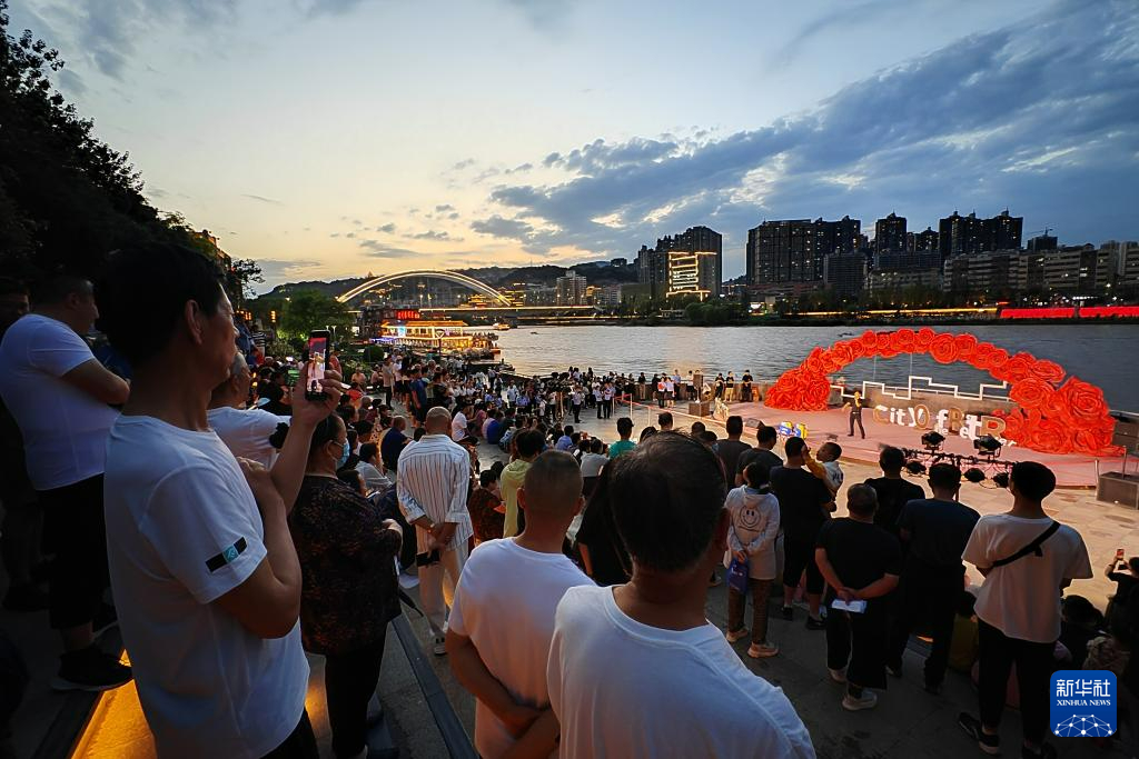 7月19日,在蘭州市城關區(qū),游客在黃河岸邊欣賞黃河之濱百日千場音樂展演活動。新華社記者 范培珅 攝