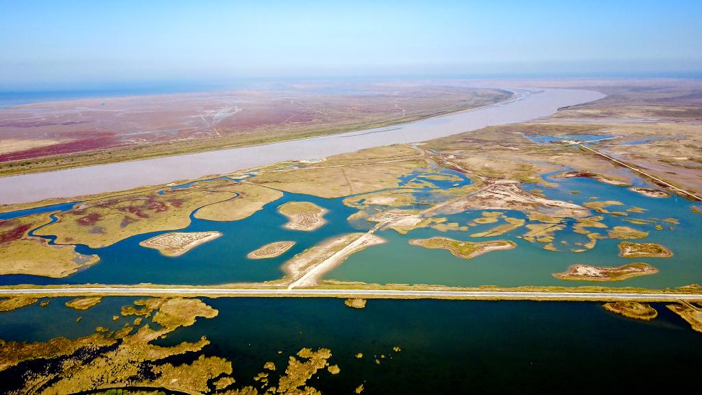 近年來,黃河三角洲國(guó)家級(jí)自然保護(hù)區(qū)建成“引、輸、蓄、排”科學(xué)生態(tài)補(bǔ)水體系,同時(shí)著力構(gòu)建“河—陸—灘—海”連通體系,連通水系115公里,疏通潮溝76公里,恢復(fù)黃河與海洋的水文連通。原先的光板地、鹽堿灘,變成了水草豐茂、生物多樣性富集的大濕地。