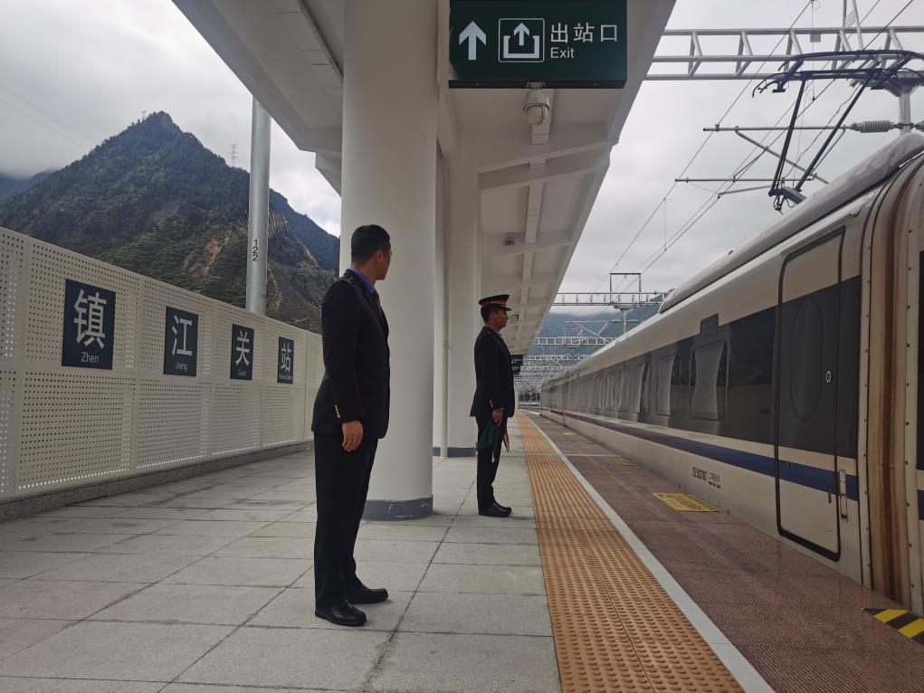 試驗列車在川青鐵路鎮(zhèn)江關(guān)站。(中國鐵路成都局集團(tuán)有限公司供圖)