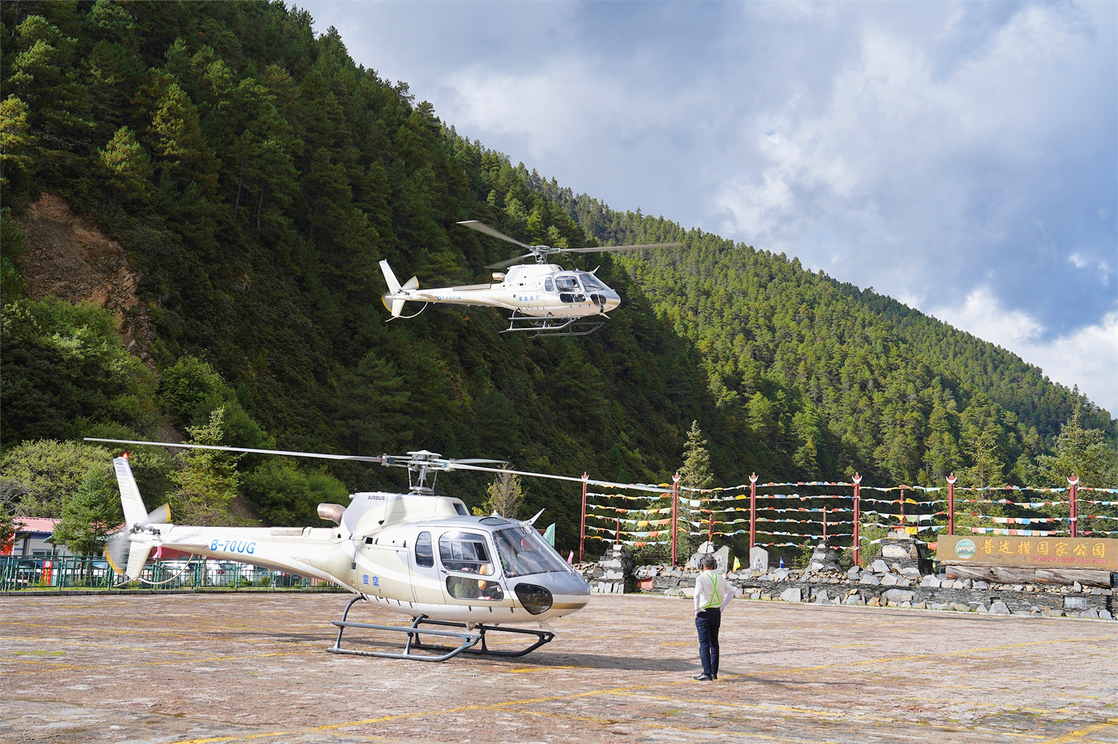 國慶假期期間,香格里拉普達措國家公園新增直升機和熱氣球低空觀光體驗項目,讓游客從高空俯瞰神秘而壯麗的普達措公園美景。