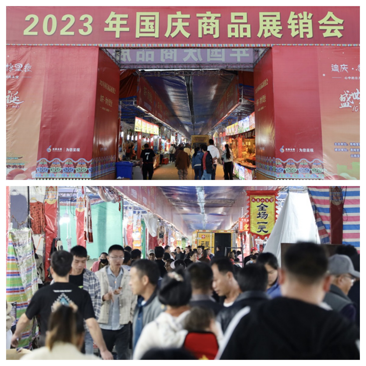 “雙節(jié)”期間,香格里拉市區(qū)納赤東路上的國(guó)慶商品展銷會(huì)內(nèi)人頭攢動(dòng)。