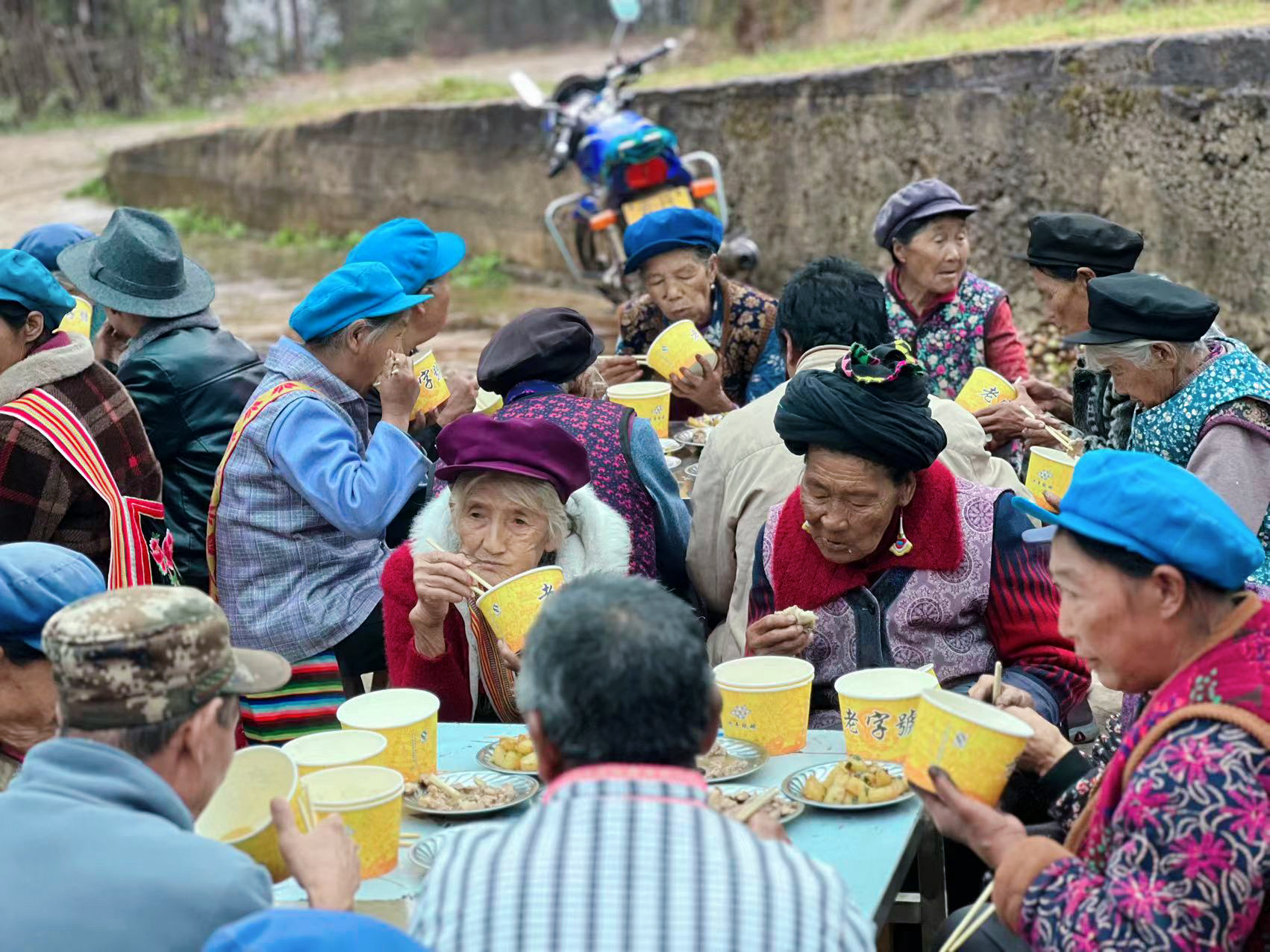 活動當(dāng)天,村里的瓦器器舞蹈表演隊為老人們表演了精彩的節(jié)目。老人們圍桌而坐,不時地舉杯慶賀屬于他們的節(jié)日,享用著精心烹制的美味佳肴,幸福的笑容始終洋溢在老人們的臉上?;顒蝇F(xiàn)場一片歡聲笑語,氣氛溫馨和諧。