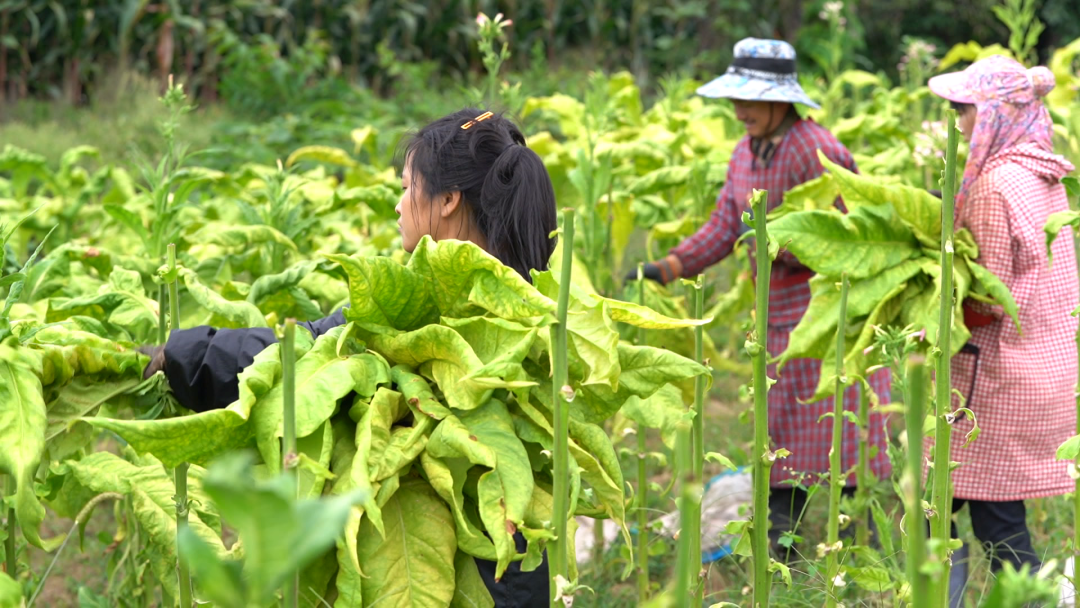 眼下,正是秋收農(nóng)忙時(shí)節(jié)。在上江福庫村的田野里,村民們正搶抓晴好天氣采摘煙葉,田間地頭處處洋溢著豐收的喜悅,紅土村村民和永軍在田間邊摘煙葉邊打開手機(jī)查看牛群動(dòng)態(tài)情況。