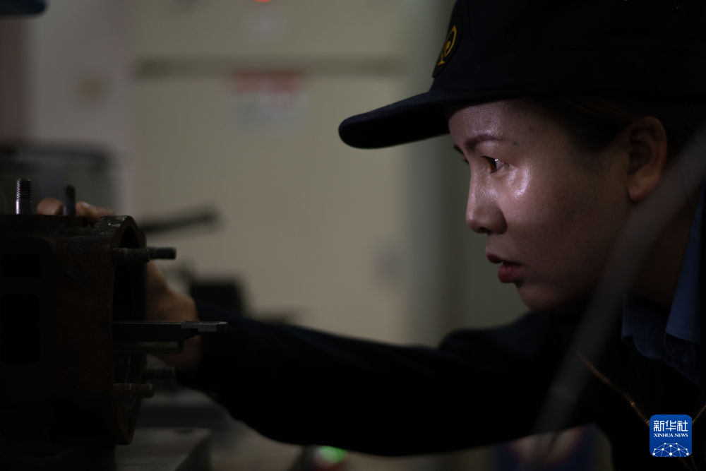 10月12日,在中國鐵路青藏集團(tuán)有限公司西寧東車輛段制動(dòng)班組,馬婷對(duì)120閥滑閥內(nèi)部通路進(jìn)行疏通。新華社記者 張龍 攝