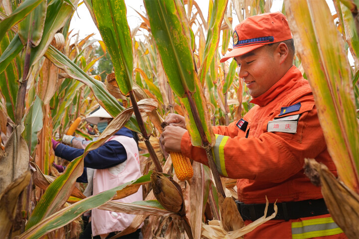 迪慶州森林消防大隊為老鄉(xiāng)搶收玉米