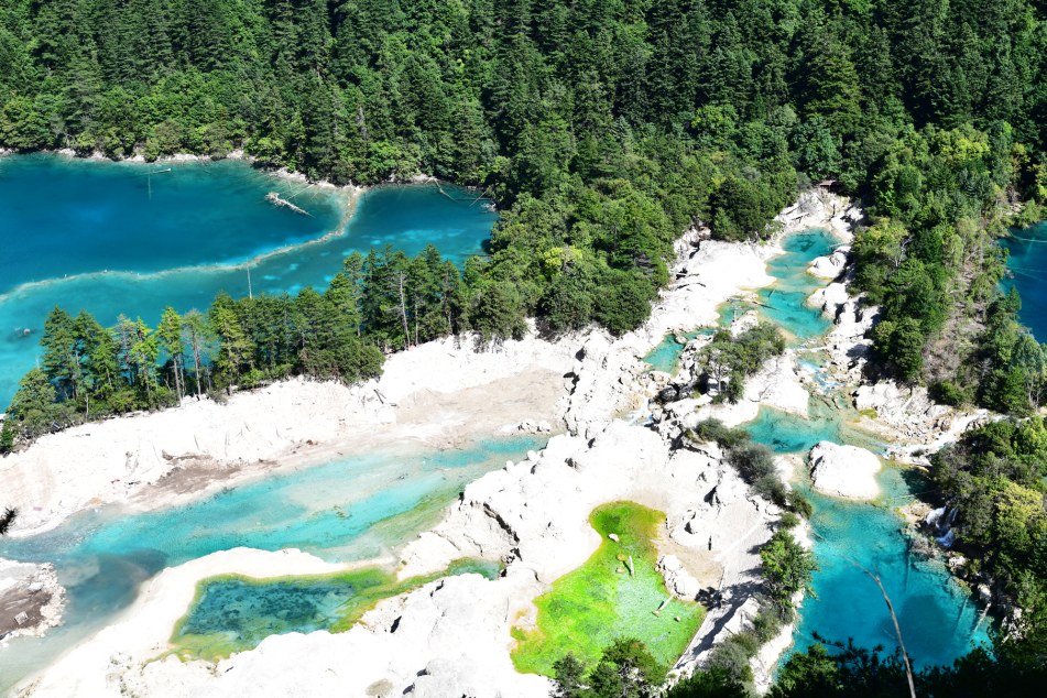 今的火花海,其修復(fù)方案得到聯(lián)合國教科文組織肯定支持,榮獲四川省“科技進(jìn)步一等獎”。圖據(jù)九寨溝管理局