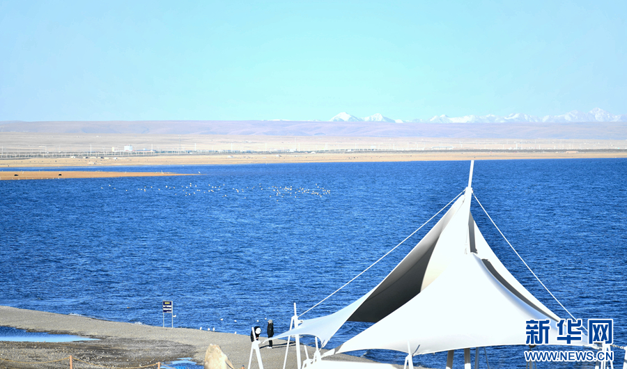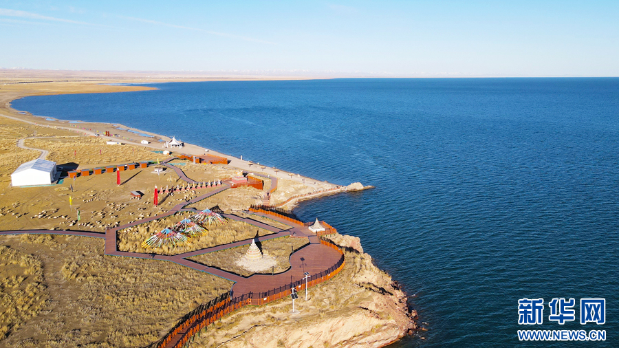 時(shí)值深秋,在位于青海湖北岸的青海省海北藏族自治州剛察縣泉吉鄉(xiāng)圣泉灣生態(tài)體驗(yàn)區(qū),天高云淡、湖水湛藍(lán),如夢如幻的秋日美景令人流連忘返。